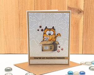 Curled up in love—and a box, Blank Handmade Greeting Card