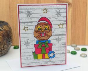 Owl on Gifts Christmas Card – Handmade Holiday Greeting with ...