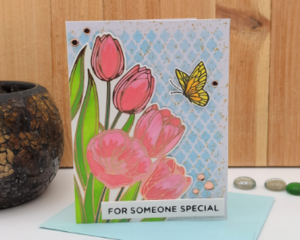 Pink Tulips & Butterfly for Someone Special, Blank Handmade G...