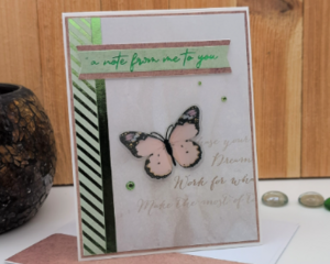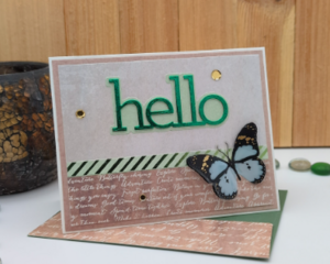 Blank Handmade Butterfly “Hello” Card – Green & Gold Accents