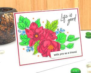 Life is good... with you as a friend, Floral Blank Handmade G...