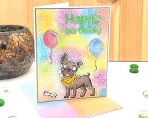 Birthday cheer with balloon-pup joy, Blank Handmade Greeting ...