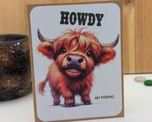 Howdy My Friend – Highland Cow Greeting, Blank Handmade Greet...