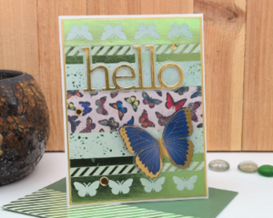 Blank Handmade Butterfly “Hello” Card – Green & Gold Accents