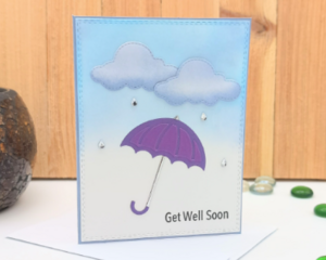 Handmade Get Well Card – Purple Umbrella & Gentle Rain Design