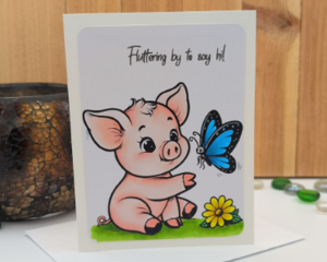 Fluttering By to Say Hi – Handmade Piglet Card, Blank Inside ...