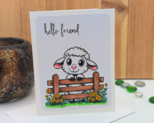 Hello Friend Sheep Card – Handmade Animal Greeting, Blank Inside