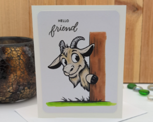 Hello Friend Goat Card – Handmade Animal Greeting, Blank Inside