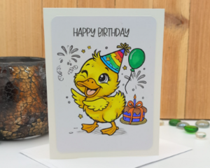 Birthday Duckling Card – Handmade Animal Greeting, Blank Inside