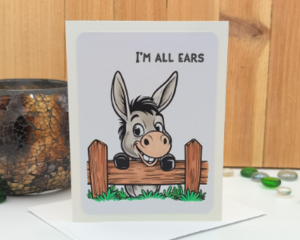 I’m All Ears Donkey Card – Handmade Animal Greeting with Supp...