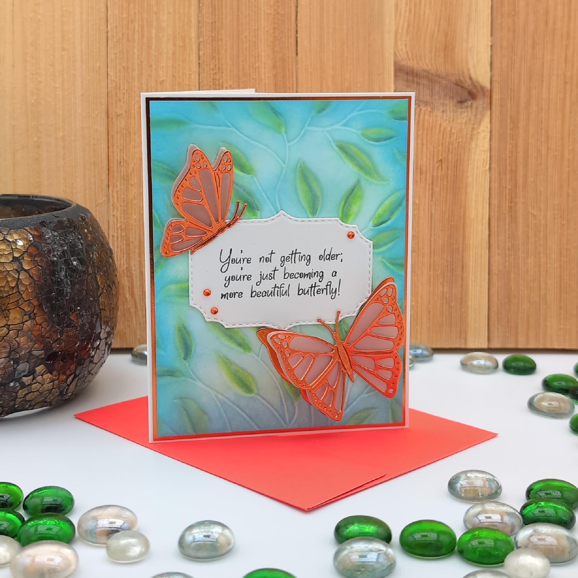 Celebrate transformation and joy with this handmade birthday card featuring vibrant butterflies and the uplifting message: “You're not getting older; you're just becoming a more beautiful butterfly!” The inside reads “Happy Birthday” in bold, cheerful lettering. Designed with colorful accents and a nature-inspired palette, this card is perfect for anyone who embraces growth, beauty, and the journey of aging with grace. A heartfelt keepsake for birthdays of all ages. Includes blank envelope.