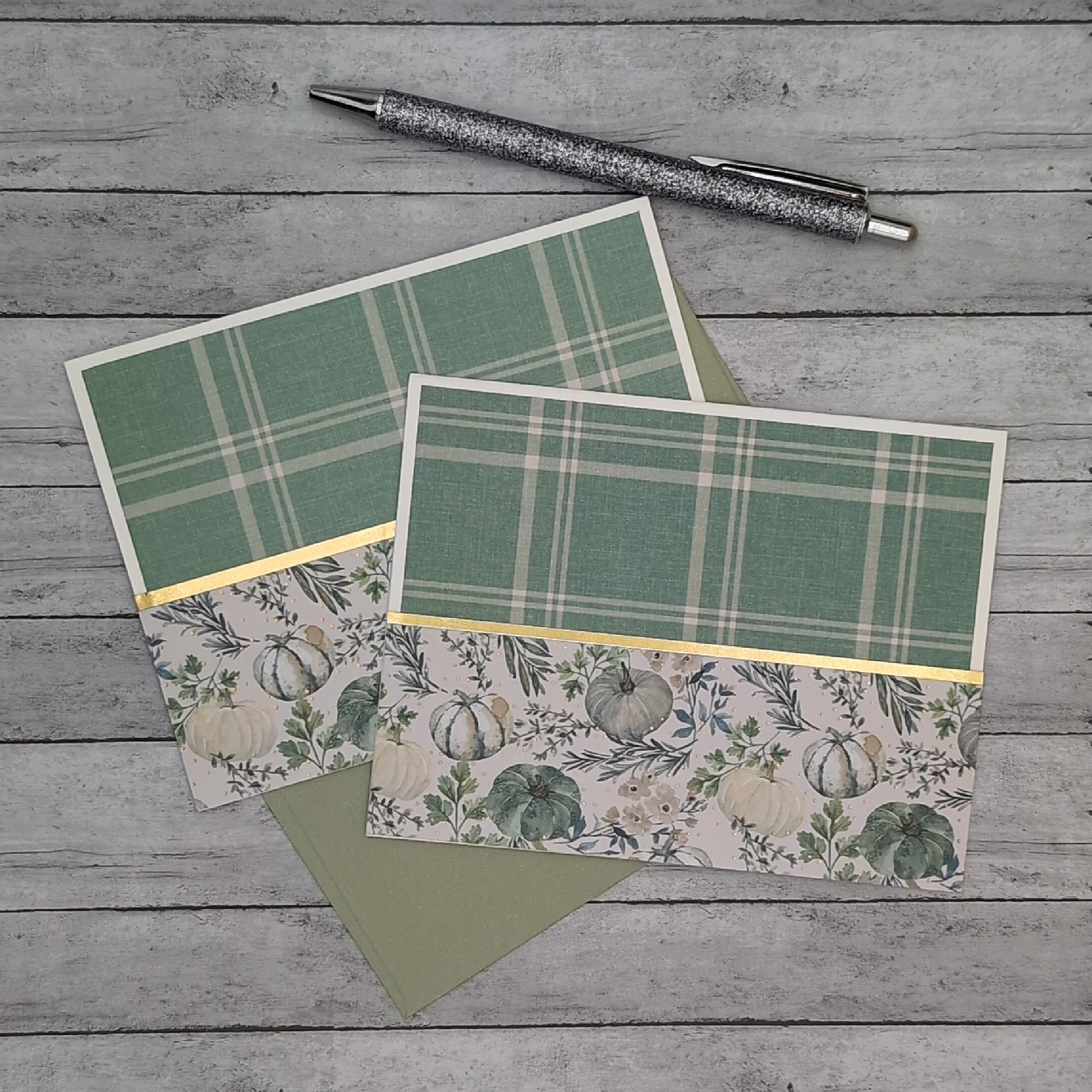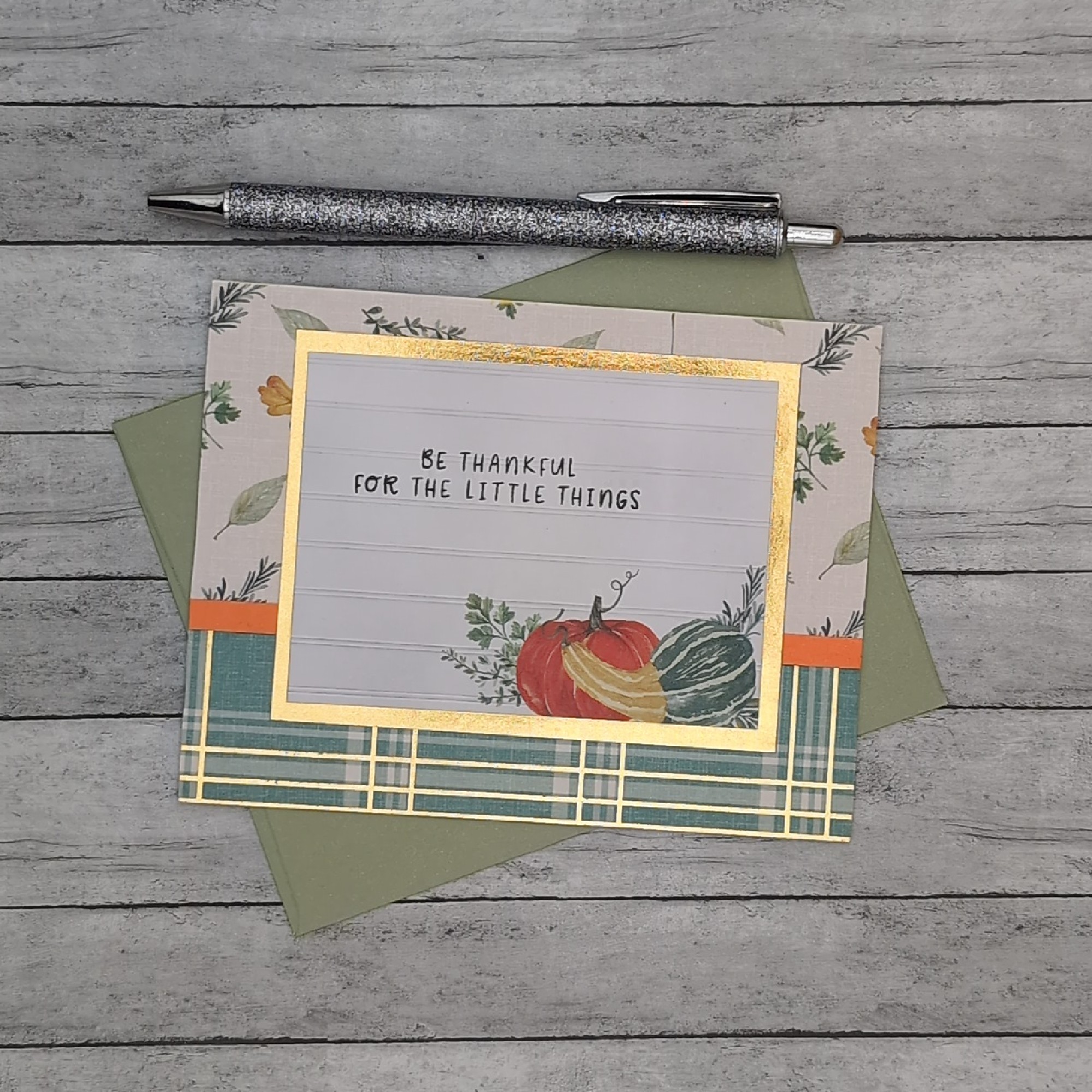 Celebrate the season with this handcrafted fall greeting card set, featuring six autumn-inspired designs. From cozy plaid backgrounds to layered pumpkins, florals, and heartfelt sentiments like “Welcome Fall” and “Be Thankful for the Little Things,” each card blends rustic charm with artisan detail. Two designs are repeated, while four offer unique layouts and color palettes. All cards are blank inside, ready for your personal message. Ideal for seasonal notes, thank-you cards, or thoughtful gestures to friends, family, or coworkers. A versatile set for autumn correspondence, bundled with coordinating envelopes.
