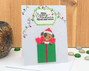 Christmas Puppy Card – Santa Hat Dog in Gift Box, Blank Handm...