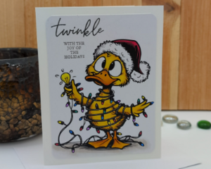 "Twinkle Duck Christmas Card – Handmade Holiday Humor"