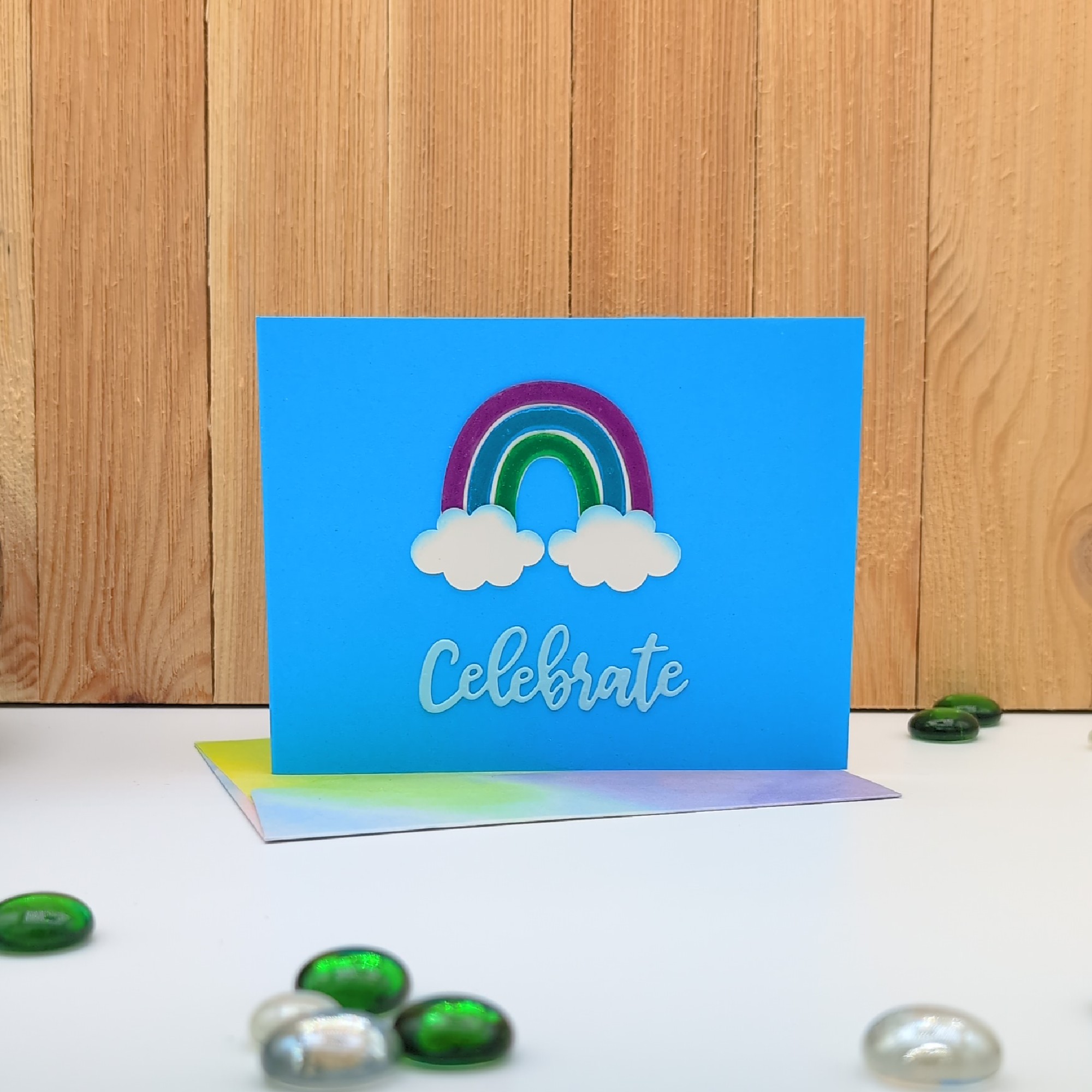 This handcrafted slice form pop-up card is a sweet celebration of new life. Featuring a dimensional baby bottle with a heart, a rainbow arch, and playful baby rattles, it pops up when opened to reveal a vibrant 3D scene. The front reads “Celebrate,” while the inside is blank—ready for your personal message. Perfect for baby showers, newborn gifts, or welcoming a little one with handmade charm. A keepsake-worthy design full of color, movement, and warmth.